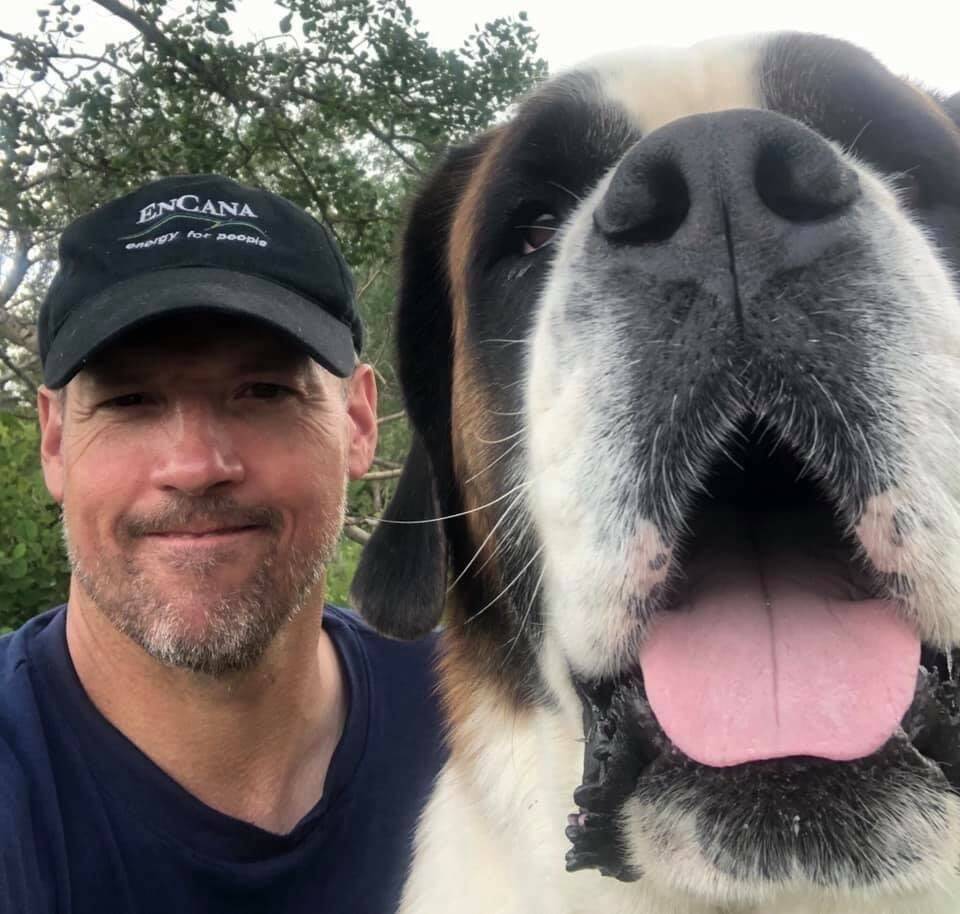 Grizzly started his career as a registered therapy dog as an eight-week-old puppy. This is Saler’s fourth Saint Bernard, but the first he has put through therapy dog training, which started at home for his first year.