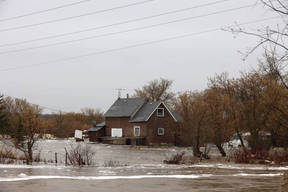 Water from the bloated Little Saskatchewan River inundates a home in the valley just outside Rivers on Thursday.(Tim Smith/The Brandon Sun)