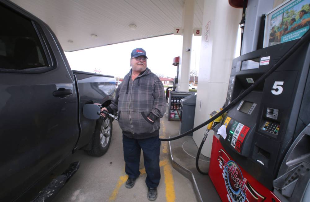 Brandon resident Clarence Toderash was filling his 2021 Chevy Silverado at the Co-Op on 18th Street North. He said he is glad he bought the truck because despite its size, it gets around 23 miles (38 kilometres) to the gallon. His gas bill came to $125 after filling from a quarter tank. His other truck, an older model Silverado, costs $160 to fill and only gets 13 miles (20 kilometres) to the gallon.