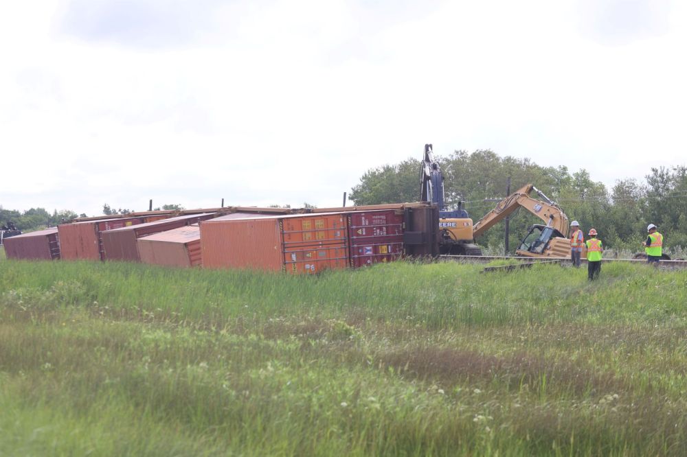 The CP train carrying intermodal containers was travelling west around 40 kilometres per hour at 2:10 a.m. when the derailment occurred.