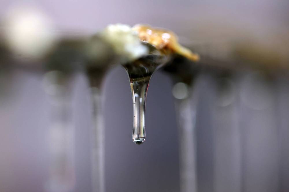 Extracted honey drips as it waits to be collected by the honey extraction line at the Vander Velde farm southwest of Rivers on Tuesday. (Tim Smith/The Brandon Sun)