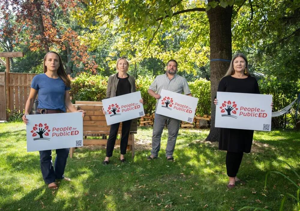 Shannon Moore (from left), Melanie Janzen, Marc Kuly and Tamara Kuly represent People for Public Education. (Winnipeg Free Press)