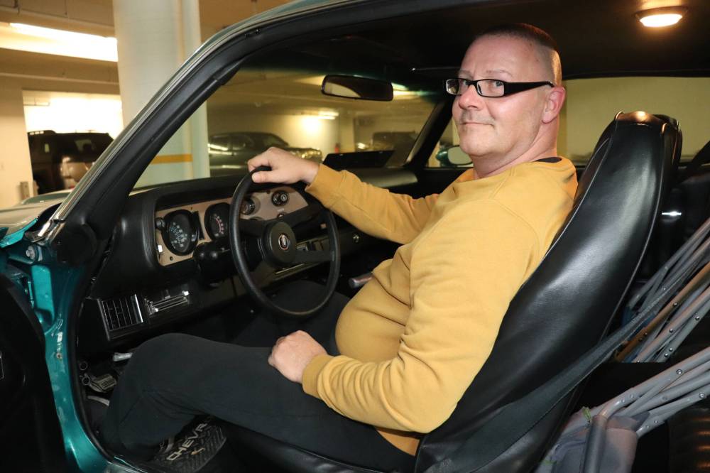 Pat Sedore poses for a photo next to his 1976 Chevrolet Camaro Wednesday in the parking garage located beneath his Brandon apartment building. Sedore drove muscle cars just like this when he was a young adult and finally got the opportunity to reclaim a second-generation Camaro this past summer. (Kyle Darbyson/The Brandon Sun)