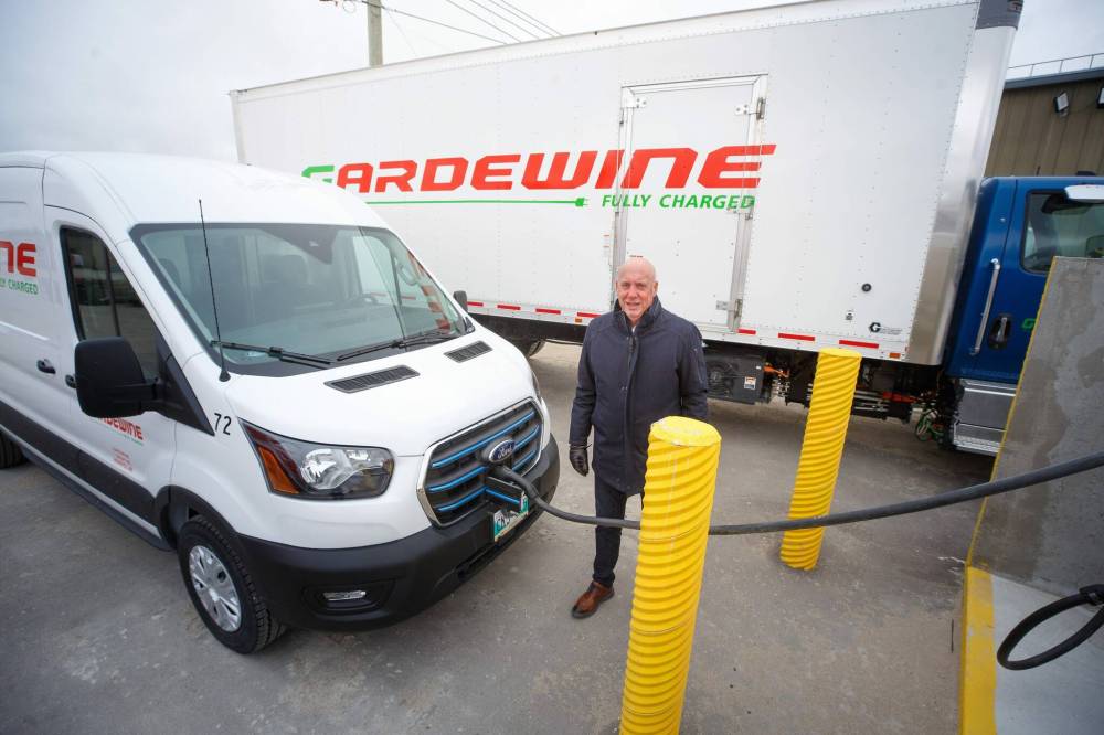 WINNIPEG — A year after experimenting with the region’s first electric shunt truck to move trailers around its yard, Gardewine has likely become the first commercial carrier in Western Canada to put a small fleet of electric courier vans on the road.