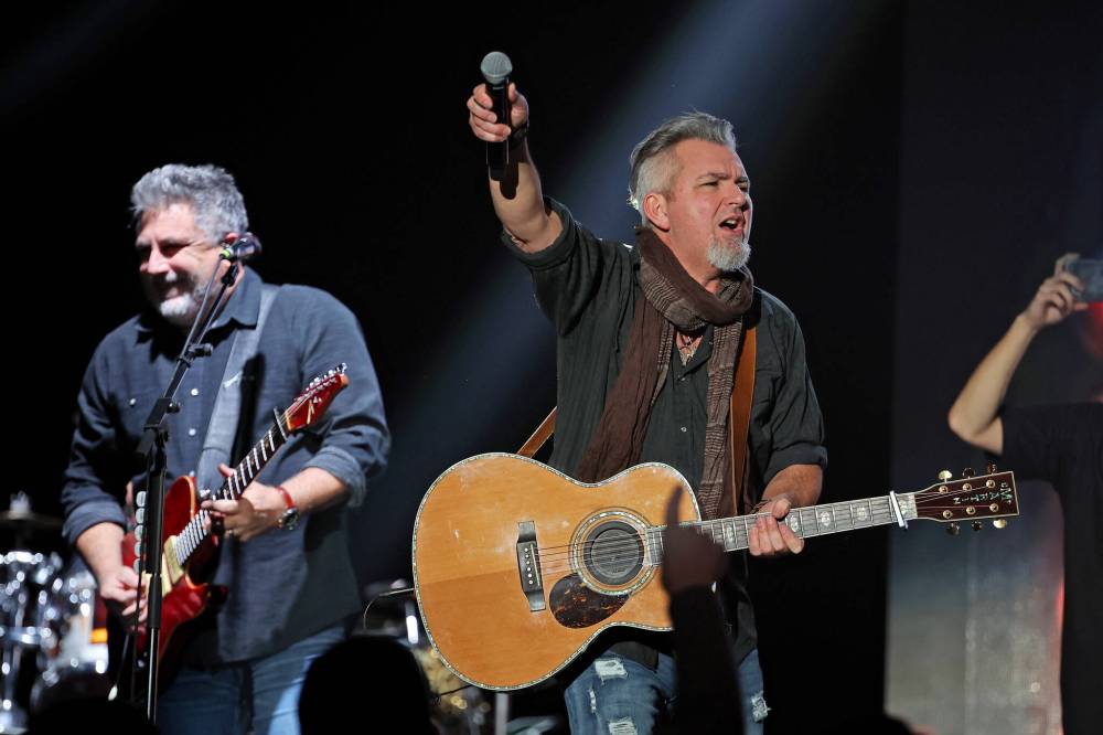 Drew Womack sings a tune as Lonestar performs at Westoba Place on Tuesday evening. (Tim Smith/The Brandon Sun)