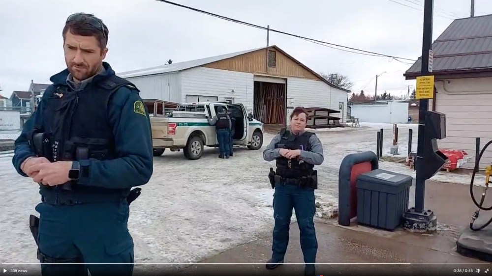 The larger video, uploaded on Bone’s Twitter page on Nov. 27 with claims that he had been “arrested by belligerents” and “never ceded,” shows Bone being arrested by Parks Canada wardens at the Co-op Cardlock gas station in Strathclair, located 92 kilometres northwest of Brandon. In the video, someone holding a phone camera is being held back by park wardens while an individual is put into a Parks Canada vehicle. Another three-second video shows Bone looking at the camera before being taken away in handcuffs.