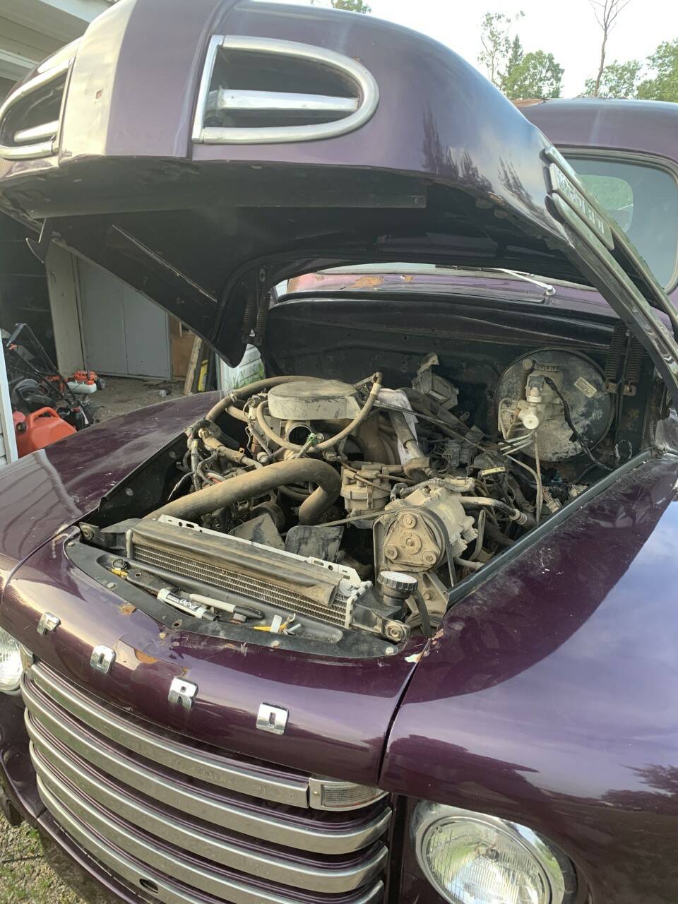 A look at the 5.8 litre V8 engine and overdrive transmission transplanted into Mansoff's 1949 Ford pickup. (Submitted)