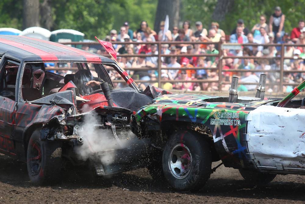 Vehicles collide during the demolition derby at the Manitoba Summer Fair in Brandon. (File)