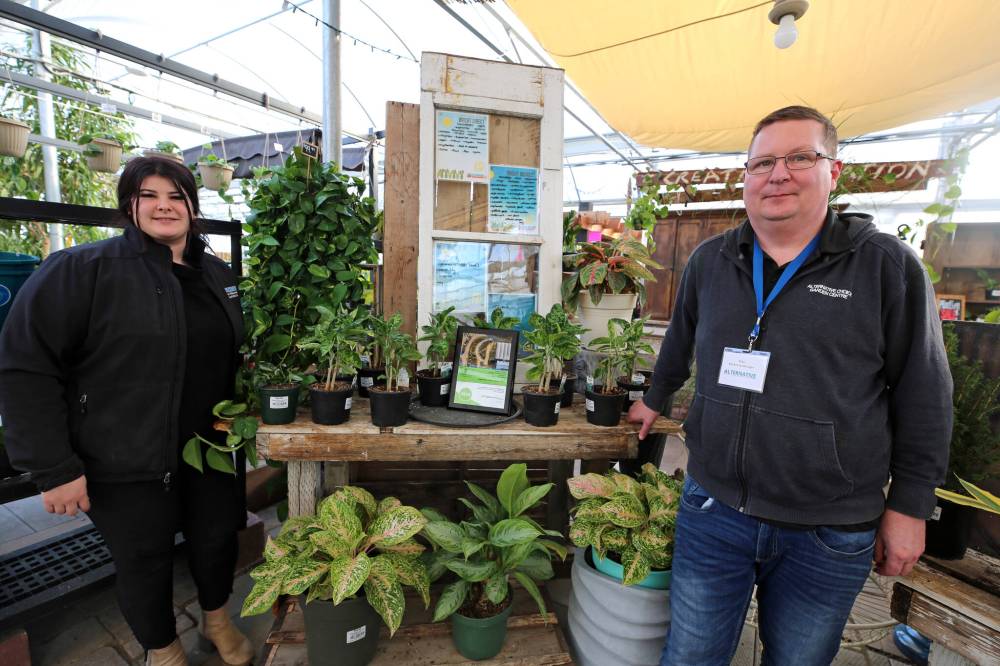 Alternative Group office manager Emma Griffin (left) and marketing manager Mike Mair (right) show off the award of merit the company's garden centre recently received from the Manitoba Nursery Landscape Association. (Colin Slark/The Brandon Sun)