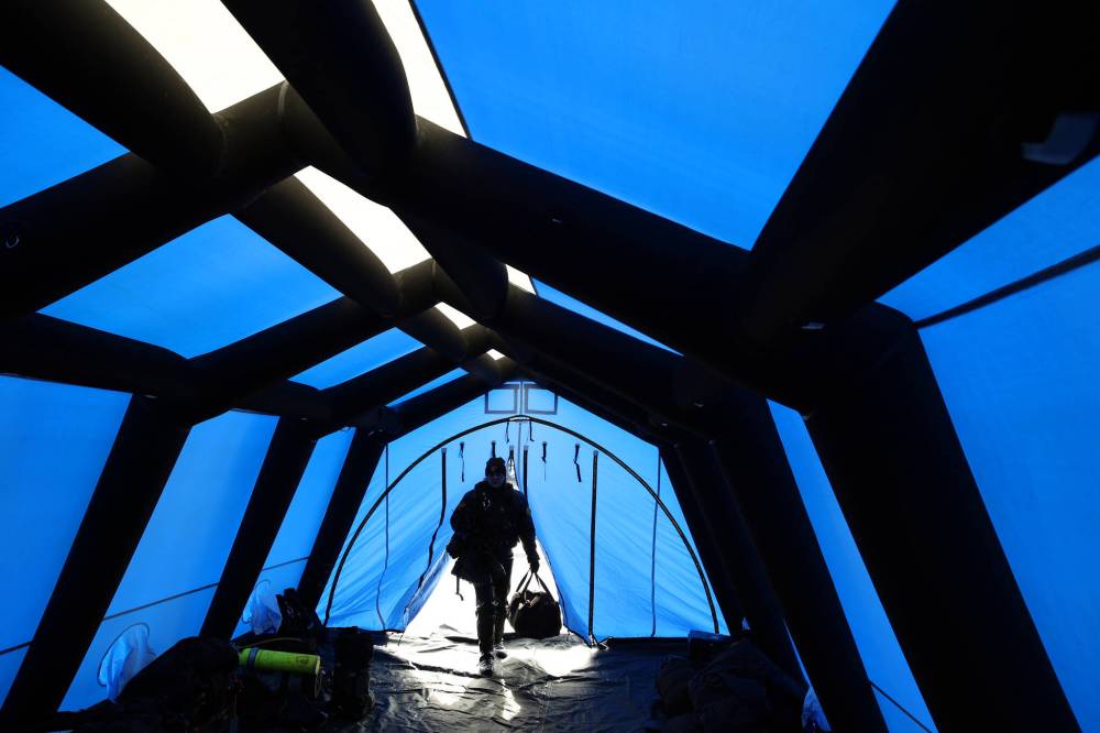Cpl. Kathryn Ternier, the recovery team co-ordinator with RCMP D Division in Winnipeg, enters the tent used for underwater recovery training re-qualification on Tuesday at Clear Lake in Riding Mountain National Park. (Tim Smith/The Brandon Sun)