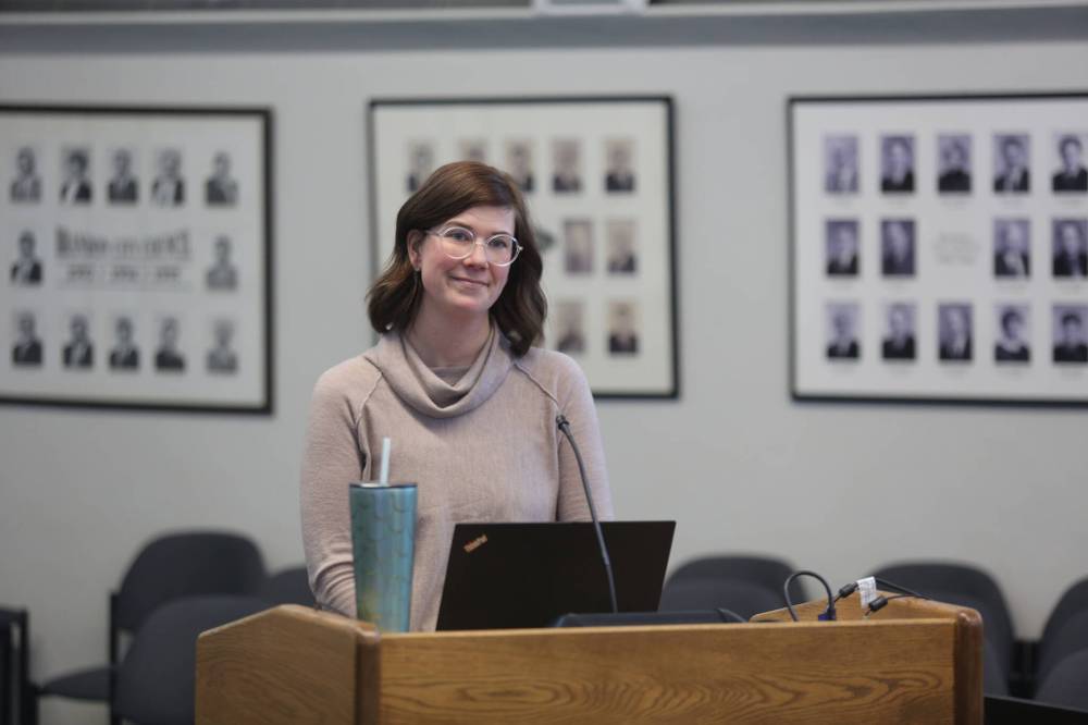 Western Manitoba Regional Library director of library services Erika Martin outlines the organization's 2023 budget request at a special meeting of Brandon City Council on Monday evening. (Colin Slark/The Brandon Sun)