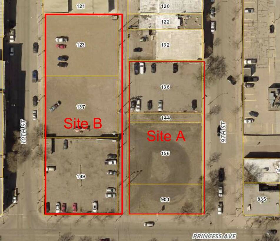 Under the new building plan, two possible sites on city-owned property beside each other on the north side of the 900 block of Princess Avenue, across from the Kristopher Campbell Memorial Skatepark, are proposed.