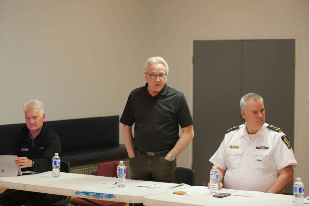 Brandon Fire and Emergency Services deputy chief Marc Lefebvre (far right) provides an update at a Ward 9 meeting at East End Community Centre on Tuesday evening. (Colin Slark/The Brandon Sun)