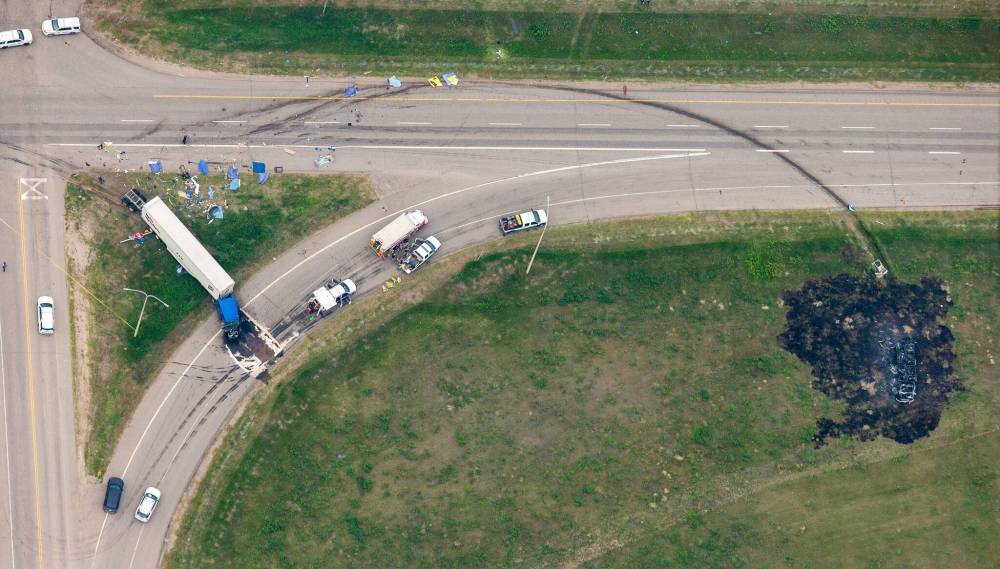 Police reports had confirmed that the driver of the semi-truck — which had been travelling about 100 kilometres per hour — had failed to yield at a flashing stop sign at the intersection of Highways 35 and 335. The driver of the semi-truck would ultimately plead guilty to 16 counts of dangerous operation of a motor vehicle causing death and 13 counts of dangerous operation of a motor vehicle causing bodily injury.