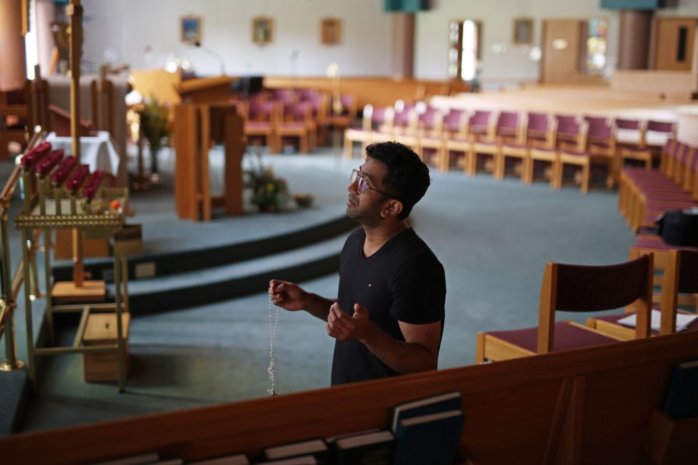Also at the church, Darrell Yunker, a caretaker, sweeps the floor. He said he had just called his wife, who learned that her friend survived and was in the hospital with a punctured lung.