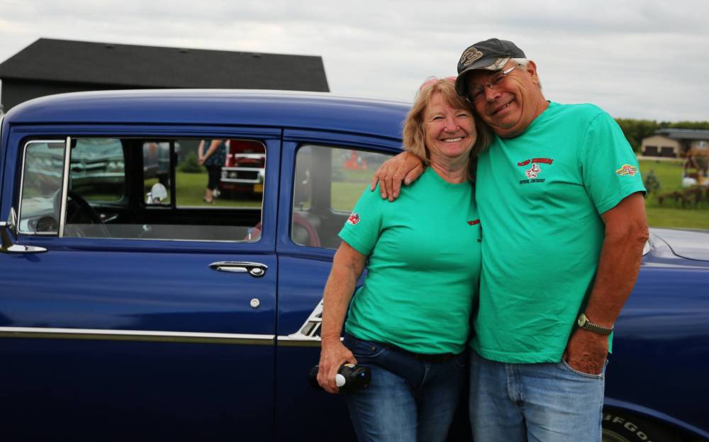 Randy and Cindy Henrickson from Sioux Lookout, Ont., stand beside their 956 Chevrolet Bel Air two-door hard top.