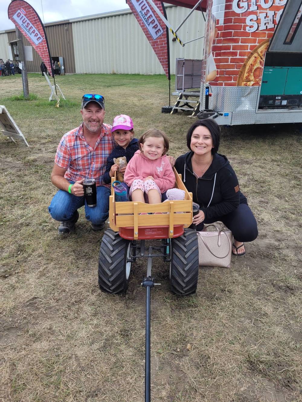 Rob Peters (left) and Courtney Peters (right) with their daughters, Jessie, 4 (front), and Joelle, 6 (back) take in the Manitoba Threshermen's Reunion and Stampede on Friday.