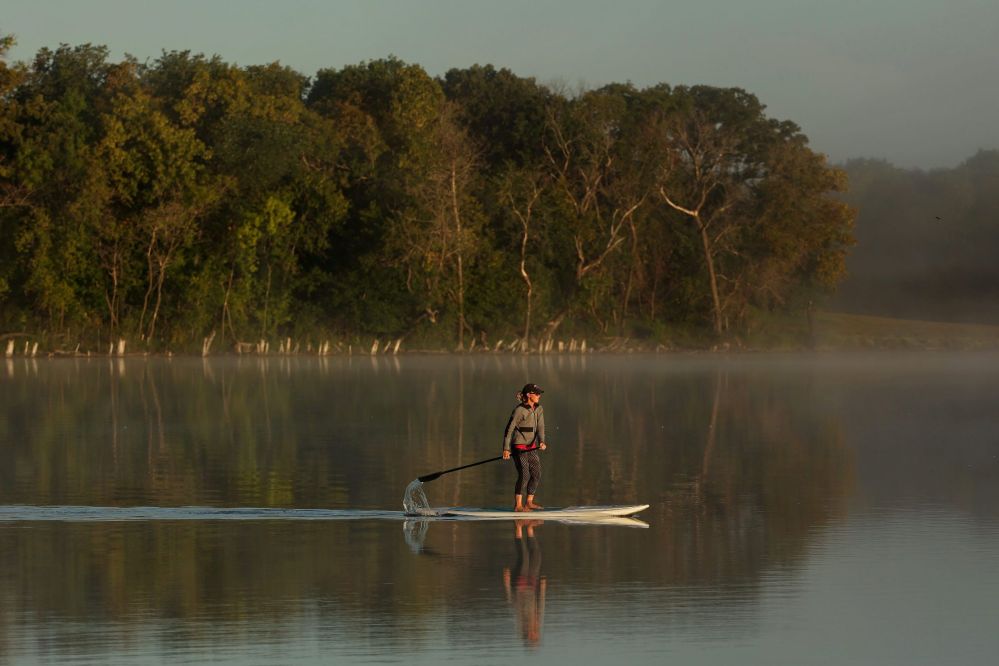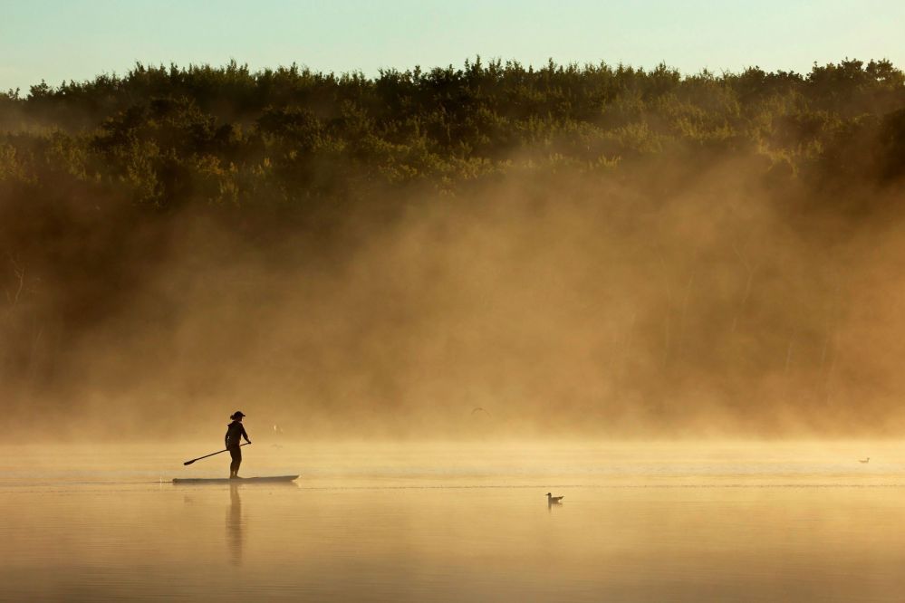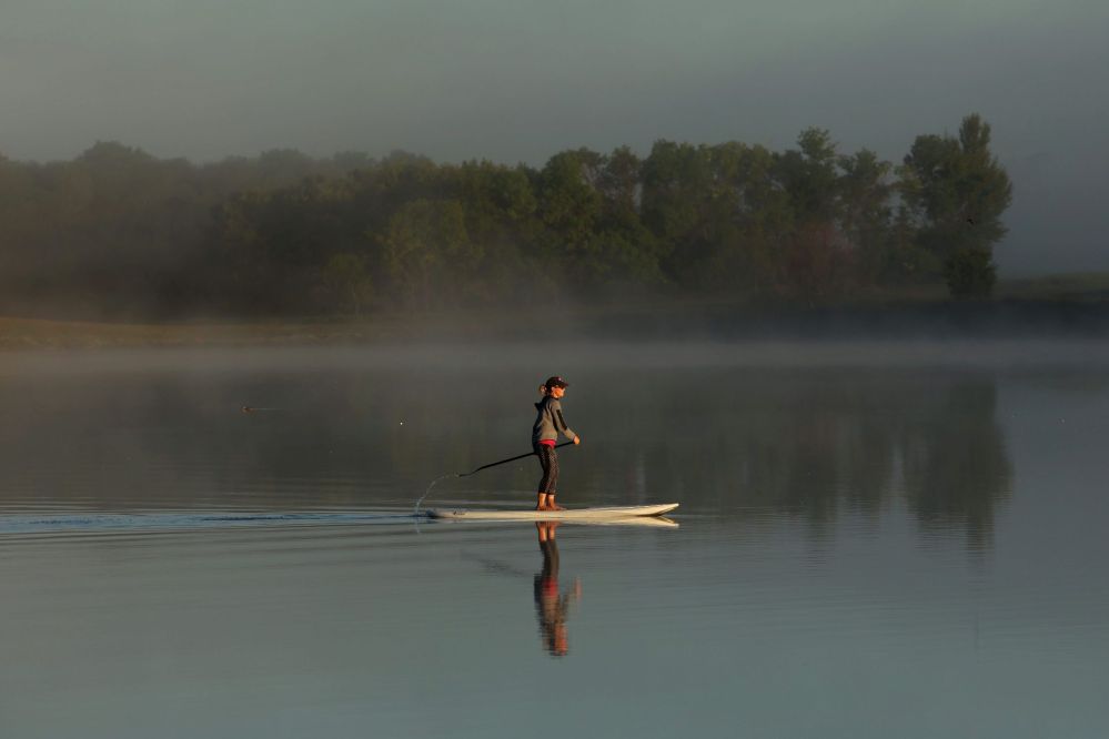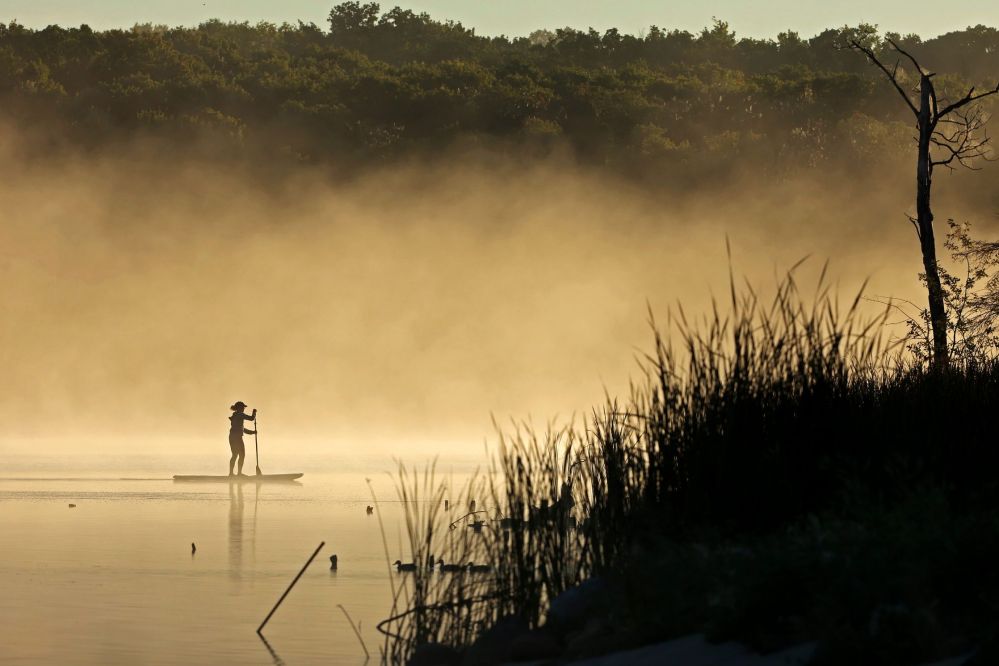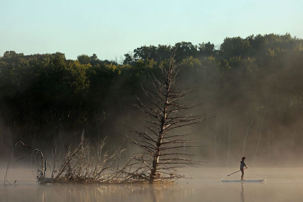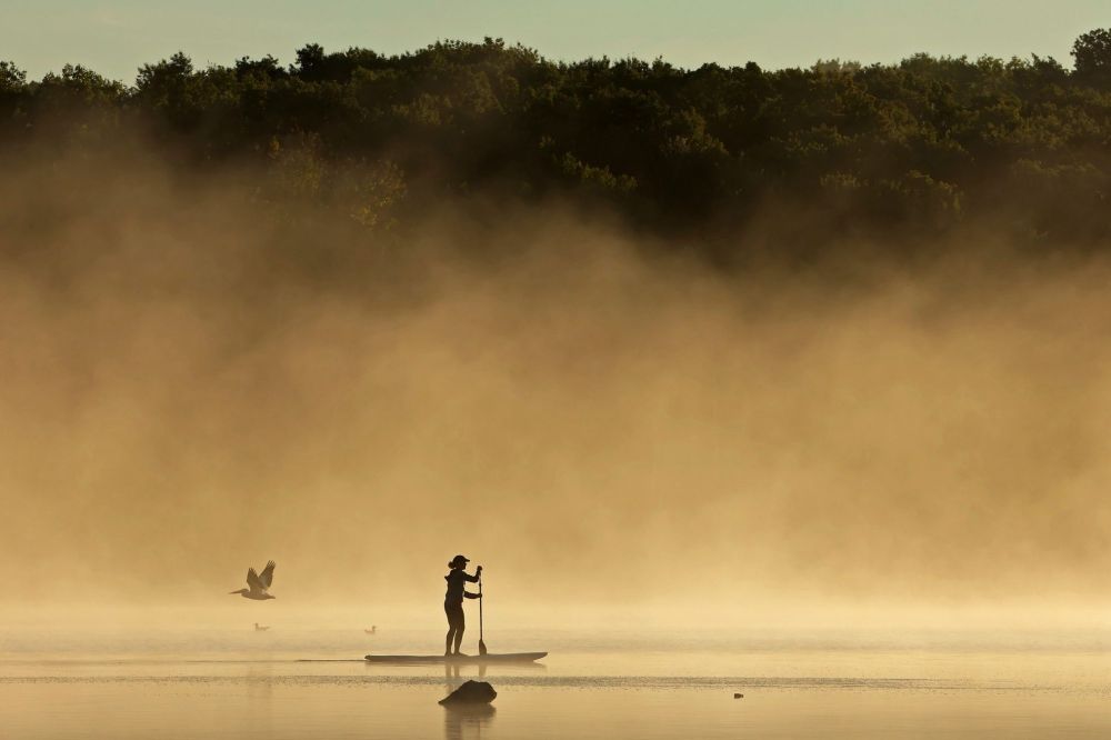 A lone paddleboarder moves along the smooth-as-glass surface of Lake Clementi as fog rolls over the lake shortly after sunrise on Monday morning. It’s one of those picture perfect moments that you always hope to catch out on the water.