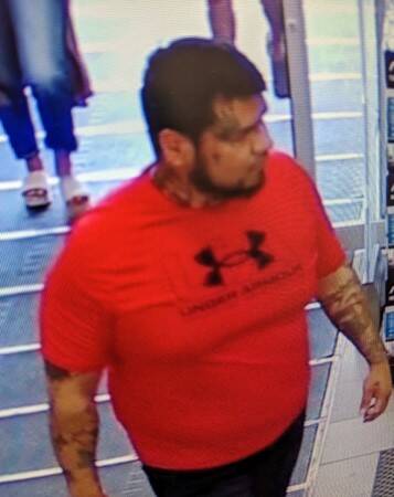 According to surveillance footage captured at the store, the man has dark hair, tattoos on his arms and face and was wearing a red Under Armour shirt at the time of the incident.