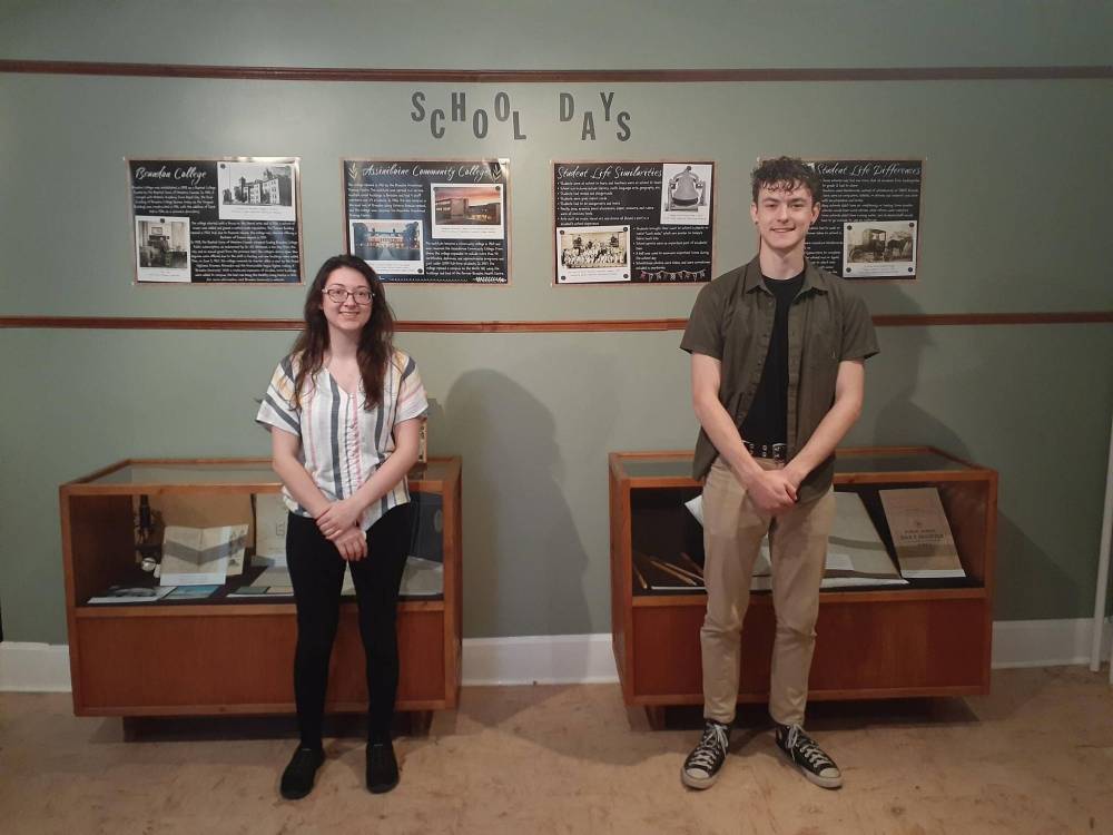 Summer interns Kaelyn Delaurier and Tanner Hall pose a photo on the second floor of the Daly House Museum in late August. The pair have been working throughout the past couple of weeks to finalize their exhibit, "School Days: History of Schools and School-life in Brandon," which finally opened to the public last Friday. (Submitted)