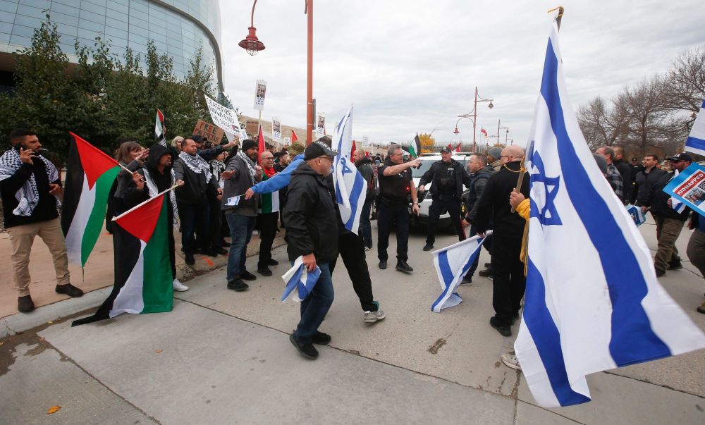 Tensions between Winnipeg’s Jewish and Palestinian communities reached a new high Sunday with an act of disrespect inciting a confrontation between the groups and forcing police to intervene.