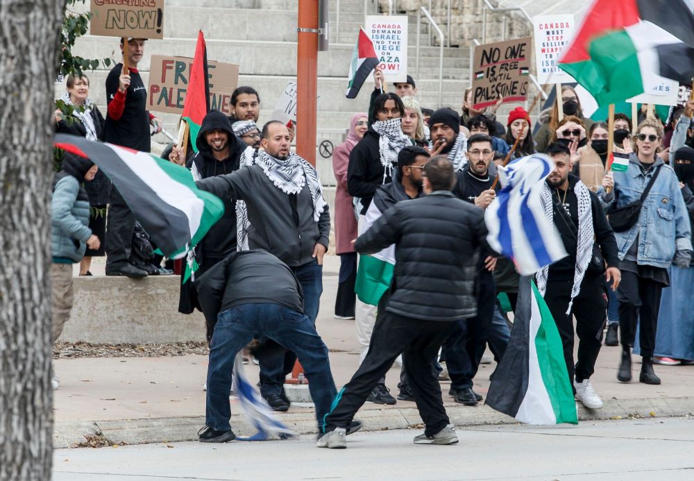 Sunday’s confrontation came on the heels of a pro-Palestine rally that brought thousands into downtown Winnipeg the previous afternoon.