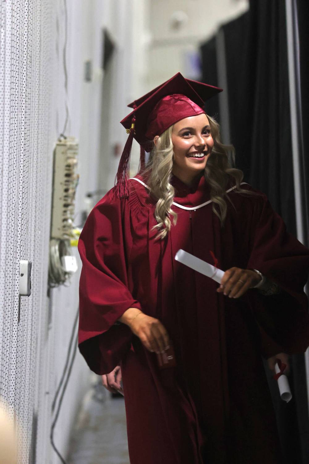 ACC graduate Kelsea Harder, from Morden, carries her degree while walking behind a curtain on her way back to her seat during the graduation ceremony.