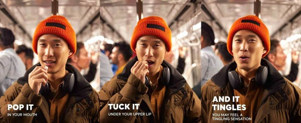 There are various advertisements on social media that depict young people sharing laughs while holding onto, or passing a container of Zonnic, with captions like “Catch up with friends,” “Before your workout,” and “Pop it, tuck it, and it tingles.”