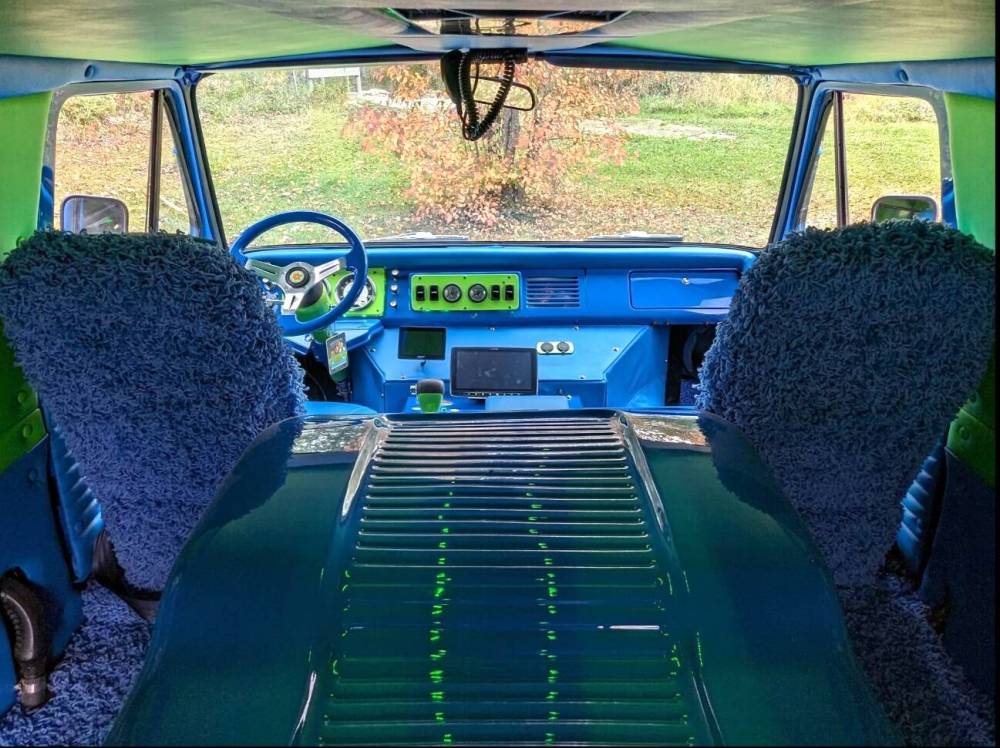 Inside the Mystery Machine and underneath all that shag carpet, there is a 6.0-litre power stroke turbodiesel V-8 and five-speed automatic transmission that is fitted with a turbocharger.