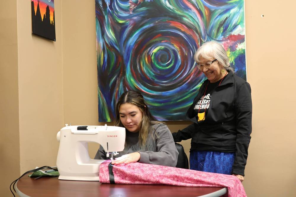 With help from Brandon University Anishinaabe Knowledge Keeper Barb Blind, university student Cari Trout of Cross Lake First Nation sews a ribbon skirt at the BU Indigenous Peoples’ Centre on National Ribbon Skirt Day, Thursday. According to Blind, who has sewn traditional skirts since the mid 1990s, the skirts represent the power of Indigenous women and their connection to the earth. This year is the second National Ribbon Skirt Day, which commemorates the experience of Isabella Kulak, a member of Cote First Nation in Saskatchewan, who was shamed for wearing a ribbon skirt to her school in 2020. The BU Indigenous Peoples’ Centre will be hosting ribbon-skirt-making workshops each Thursday throughout the month from 10 a.m. until early afternoon.