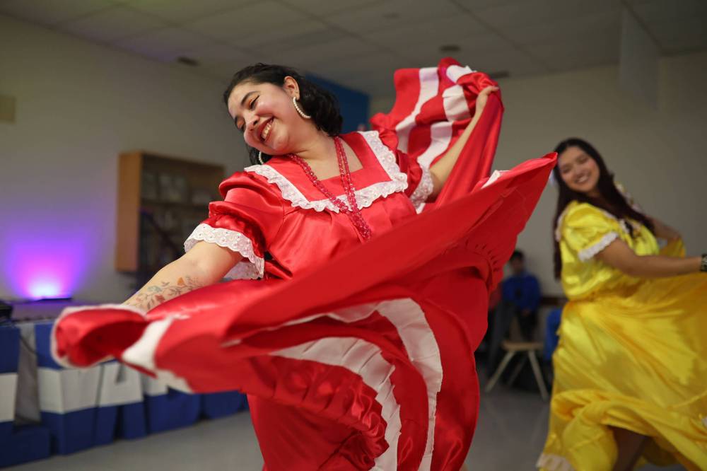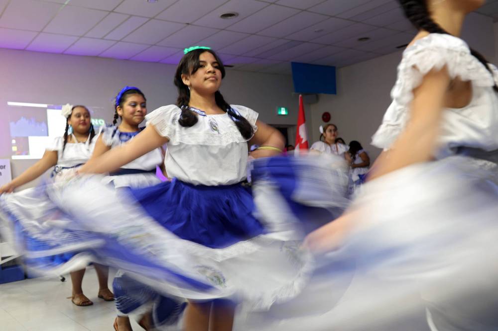 Dancers perform at the El Salvador Pavilion in the North End Community Centre during the opening ceremony for the Westman Multicultural Festival on Thursday evening. (Tim Smith/The Brandon Sun)