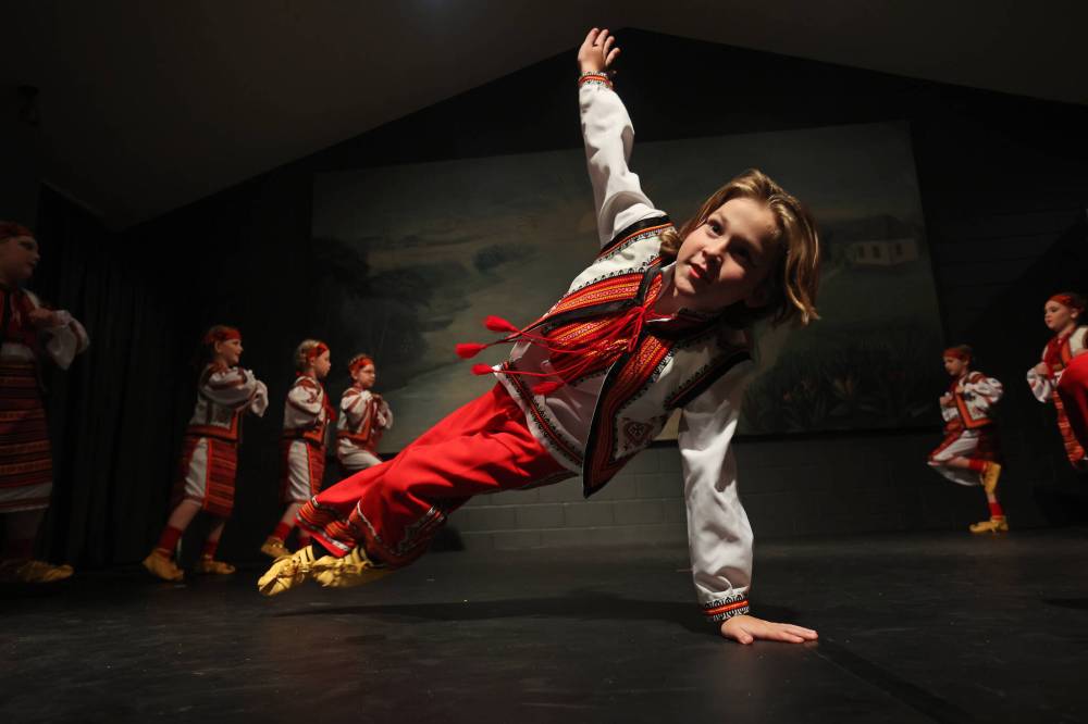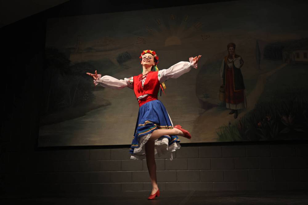 Jillian Hoffman with the Brandon Troyanda School of Ukrainian Dance performs a Transcarpathian dance at the Ukraine Pavilion in the Ukrainian National Hall on the opening night of the Westman Multicultural Festival on Thursday evening. (Tim Smith/The Brandon Sun)