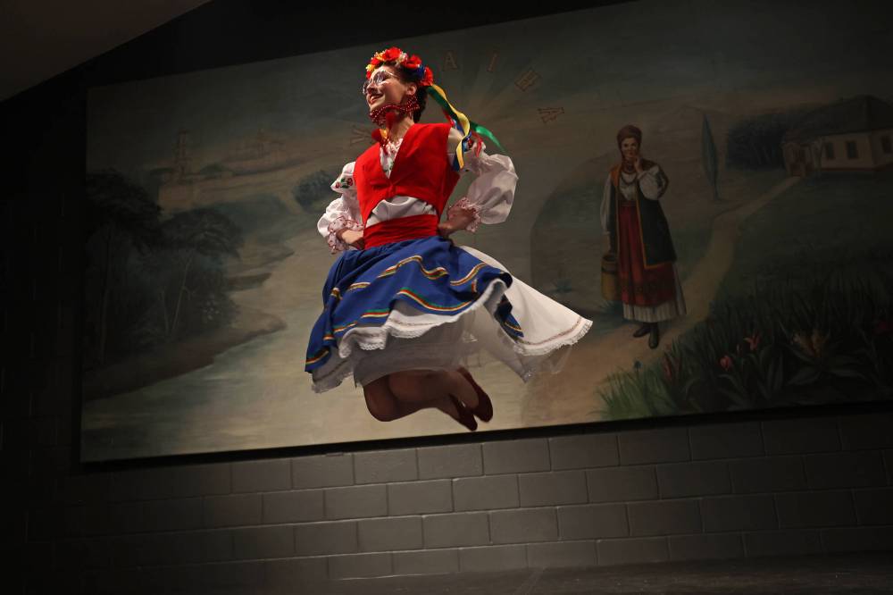 In addition to the delectable food, the Ukrainian pavilion captivates audiences with lively dance performances. The Brennan School of Ukrainian Dance, along with the Brandon Ukrainian Dance School, boasts around 100 dancers, ranging in age from four to 64. The dancers showcase a dynamic and entertaining performance, representing different regions of Ukraine with unique dance styles.