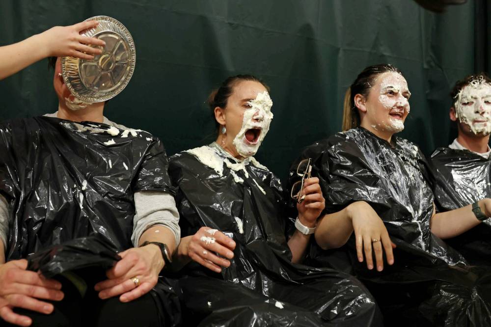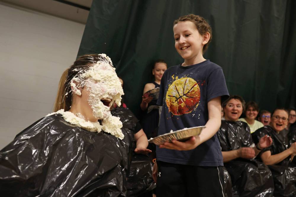 “Also, students were encouraged to raise money from $5 up and put their name in a draw. The top fundraisers won the opportunity to throw a pie at the dozen teachers who volunteered to be targets,” said Carkener.