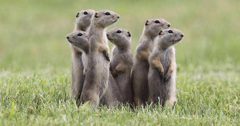 A pack of attentive gophers stand at the mouth of their burrow. (File)