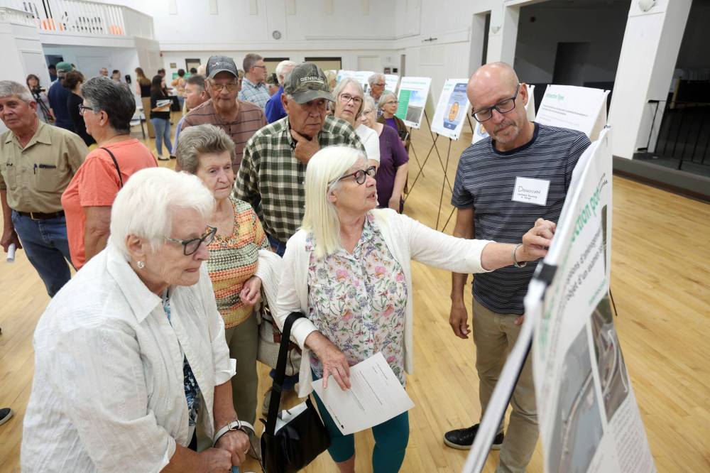 Residents, truckers, first responders and local officials engaged in lively discussions on the options displayed around the hall for redesigning the intersection of the Trans-Canada Highway and Highway 5.
