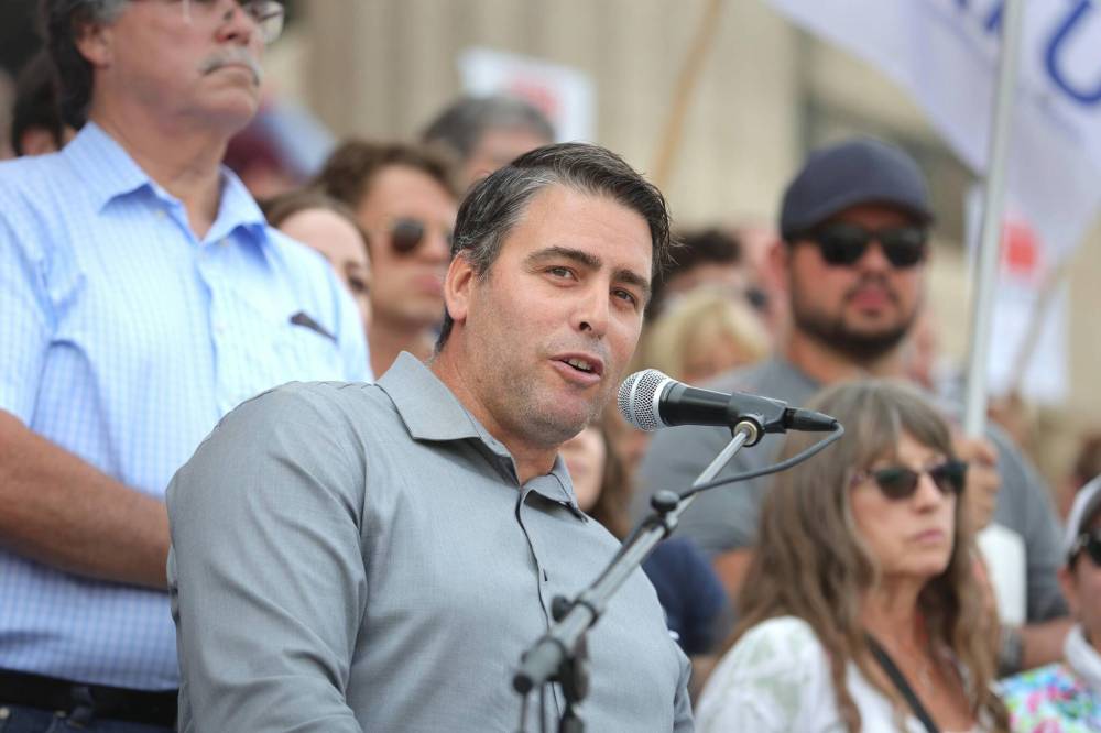 MGEU president Kyle Ross speaks during a rally in support of striking Manitoba Liquor and Lotteries workers last year. On Thursday, the union issued a statement saying it recommends its members working for Prairie Mountain Health and the Interlake-Eastern Regional Health Authority reject their latest contract offer. (File)