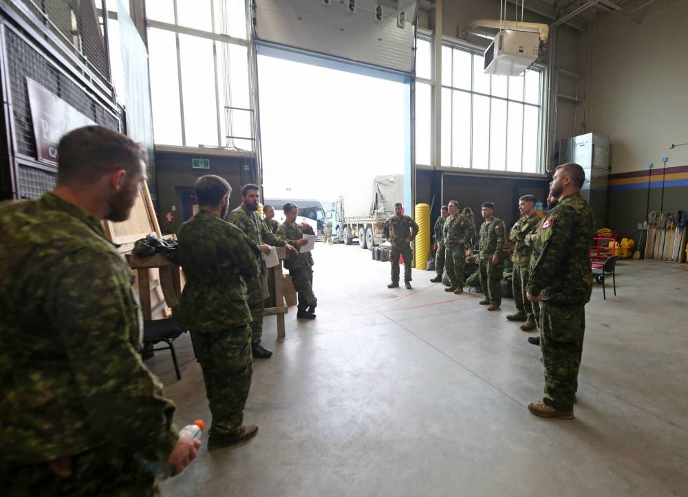 Soldiers with the 2nd Battalion, Princess Patricia’s Canadian Light Infantry at CFB Shilo pack up their backpacks and other equipment for the journey west to Alberta on Friday morning.