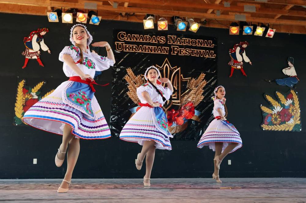 Petra Anderson, Nina Heisler and Natalia Anderson with Rushnychok Ukrainian Dance perform a Transcarpathian dance at Canada’s National Ukrainian Festival near Dauphin in 2022. This year’s festival kicks off on Friday. (File photos)