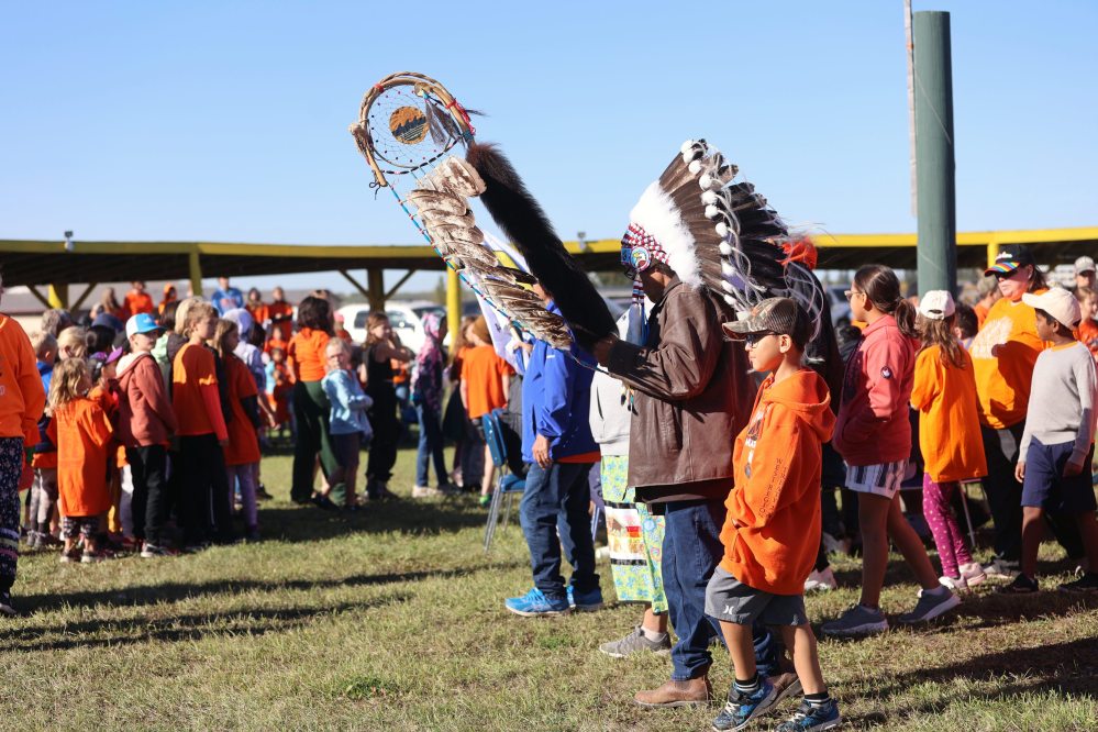 Orange shirts were provided from Jordan’s Principle, a program that ensures First Nations children can access products, services and support they need. The shirts bore a list of names of local residential school survivors, attendees and the name of nearby residential schools.