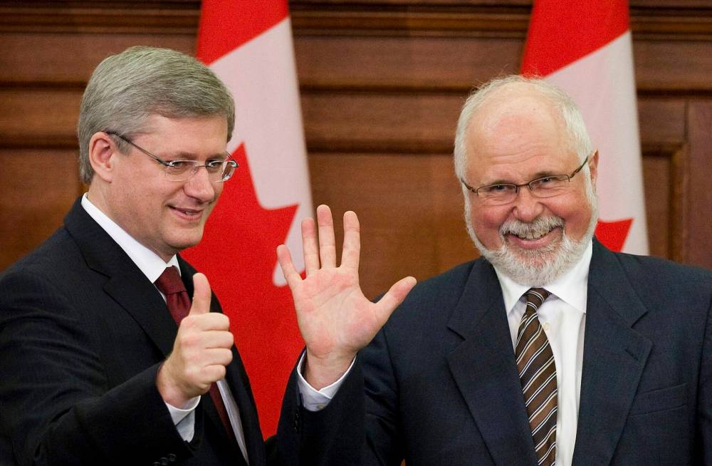 Former prime minister Stephen Harper welcomes former Dauphin-Swan River-Neepawa MP Robert Sopuck to the Conservative caucus on Parliament Hill in Ottawa in December 2010 after Sopuck won a byelection to replace Inky Mark.