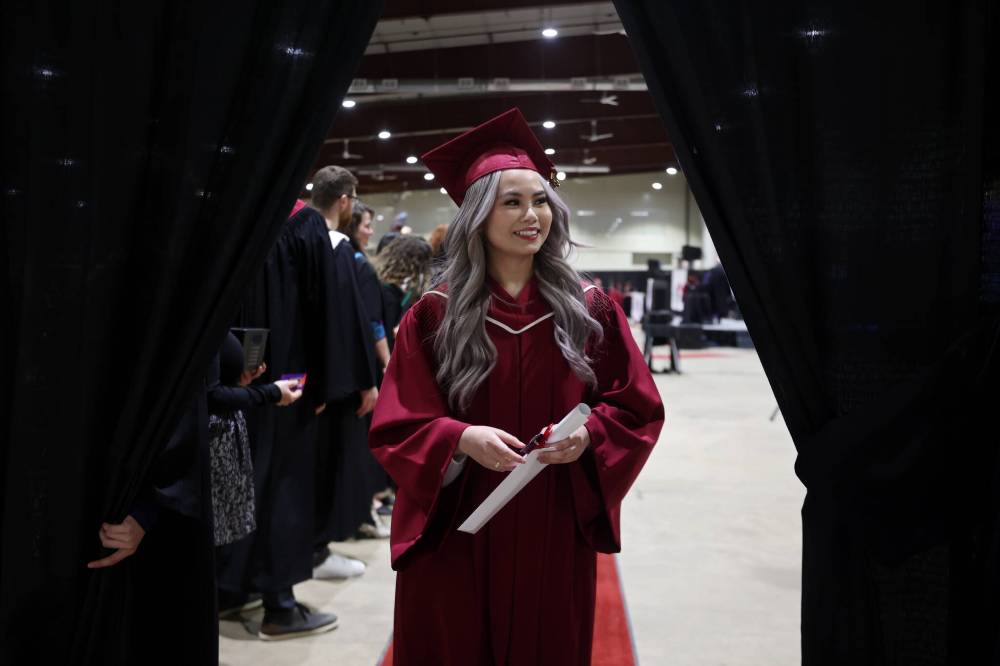 Practical nursing graduate Irene Chua smiles after receiving her diploma.