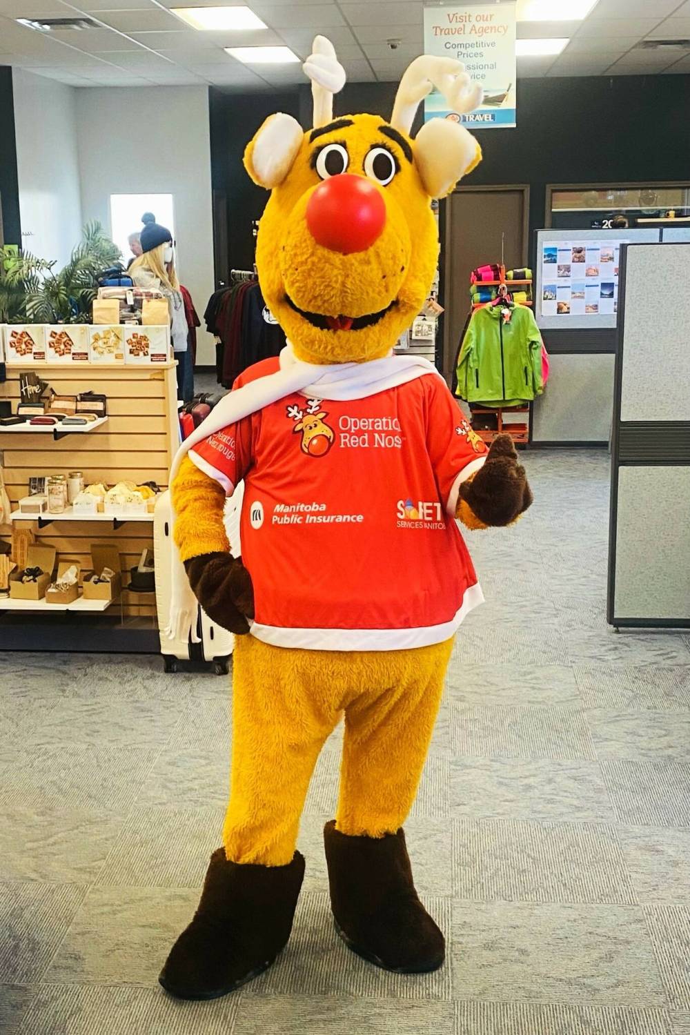 Rudy, the mascot for Brandon’s Operation Red Nose, poses during the launch of the 2023 season. (File)