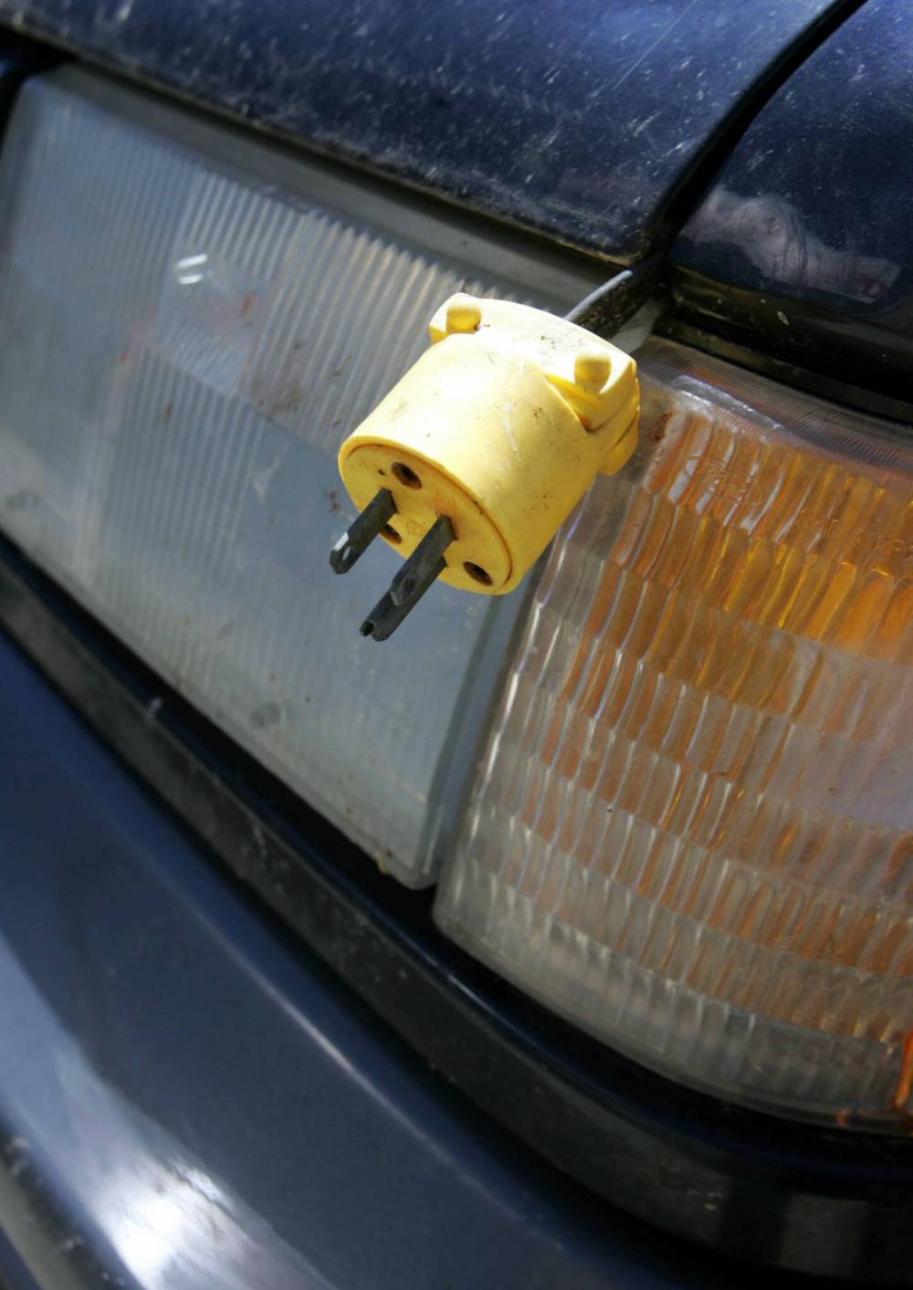 A block heater plug sticks out from under the hood of a car. Brandon Fire and Emergency Services says people need to be reminded that damaged extension cords that are plugged into block heaters can cause fires. (File)
