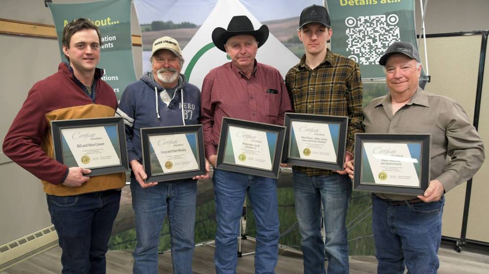 Ducks Unlimited Canada recognized five farms in Westman for planting forage on their properties through the 2024 season program in a bid to improve farm sustainability and contribute to environmental health.