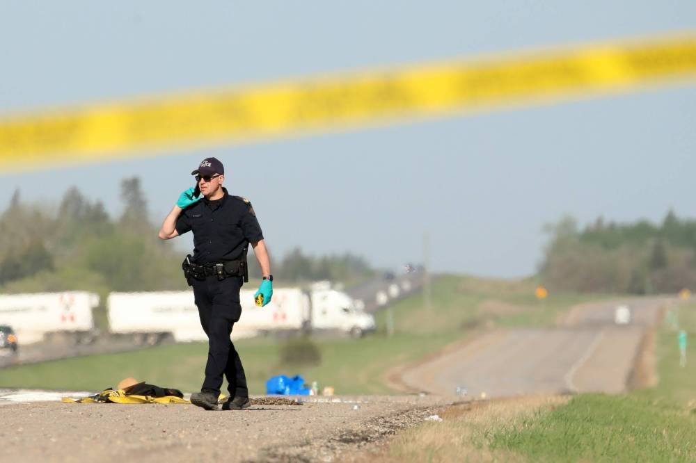 A Brandon Sun staffer who was on scene around 8 a.m. Tuesday saw the westbound lanes were closed for about one kilometre and RCMP officers were directing traffic to a gravel road that runs parallel to the eastbound lanes. There was an investigation vehicle onsite and yellow markers scattered across the scene. Small pieces of debris were scattered on the westbound lanes and beside the highway.