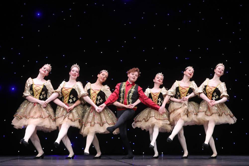 Dancers perform in the competitive intermediate ballet (14) extended small group category during the second day of the Entertain Us Dance Competition at the Western Manitoba Centennial Auditorium on Friday. (Tim Smith/The Brandon Sun)