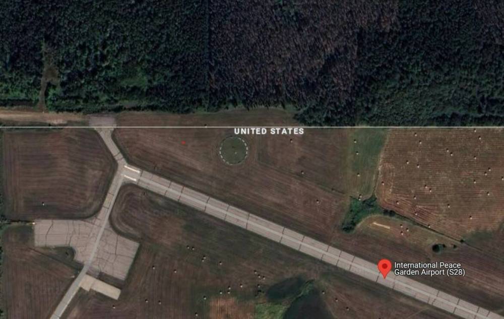 Canadians can land at the airstrip, taxi the aircraft over the border to the pavement chunk in Canada, park, visit the gardens, clear customs, and take off again. But the airstrip and the taxiway, being just south of the border, are paid for by the United States.