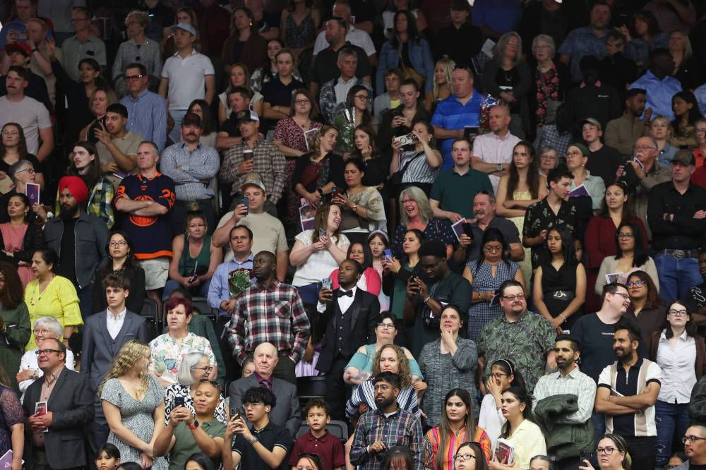 Family, friends and loved ones fill the stands at Westoba Place for the Assiniboine College graduation ceremony for the Peters School of Business and Russ Edwards School of Agriculture and Environment on Friday morning. (Tim Smith/The Brandon Sun)