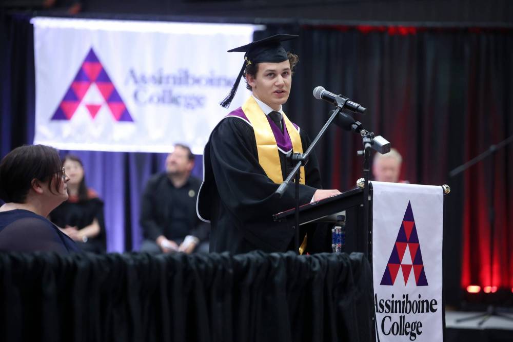 Pearce shared his experience travelling to Italy and participating in national student leadership opportunities, noting how education at Assiniboine extended far beyond textbooks. He now plans to pursue a bachelor of engineering degree through a diploma-to-degree program at Lakehead University.